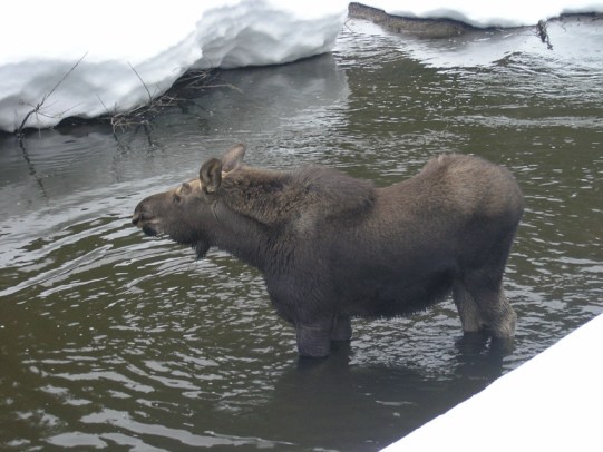 Young moose in Bonanza Cr. Females with young overwinter along Bonanza. June 1, 2015June 1, 2015 timsander401